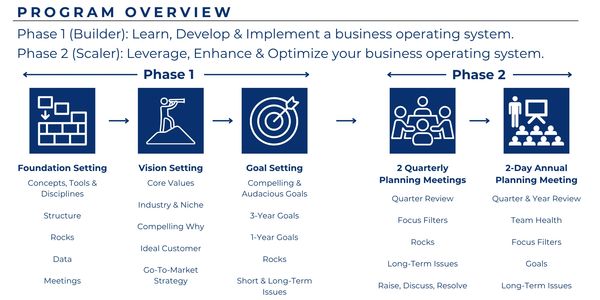 Our customized BOS-UP Implementation Programs are built for leadership teams of 2–5 inside companies with 5–100 employees and $1M–$20M in annual revenue. If your business is growing but feels increasingly chaotic—and too much depends on you—this six-month to one-year partnership is designed to restore clarity, control, and consistent execution.